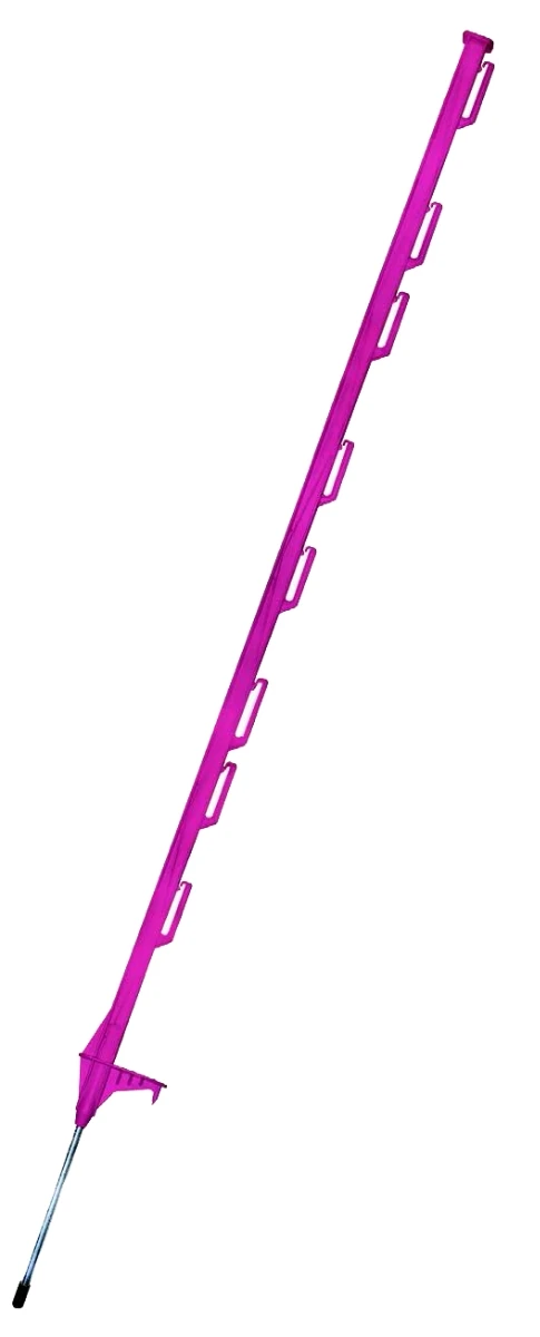 Each post is molded of reinforced polypropylene with a heavy-duty steel stake. Containing extra reinforcing ribs for strength, each post also features a large step-in flange and anti-rotation spike to keep the stake from turning. Use for rotational grazing, gardens, property lines, and construction sites.