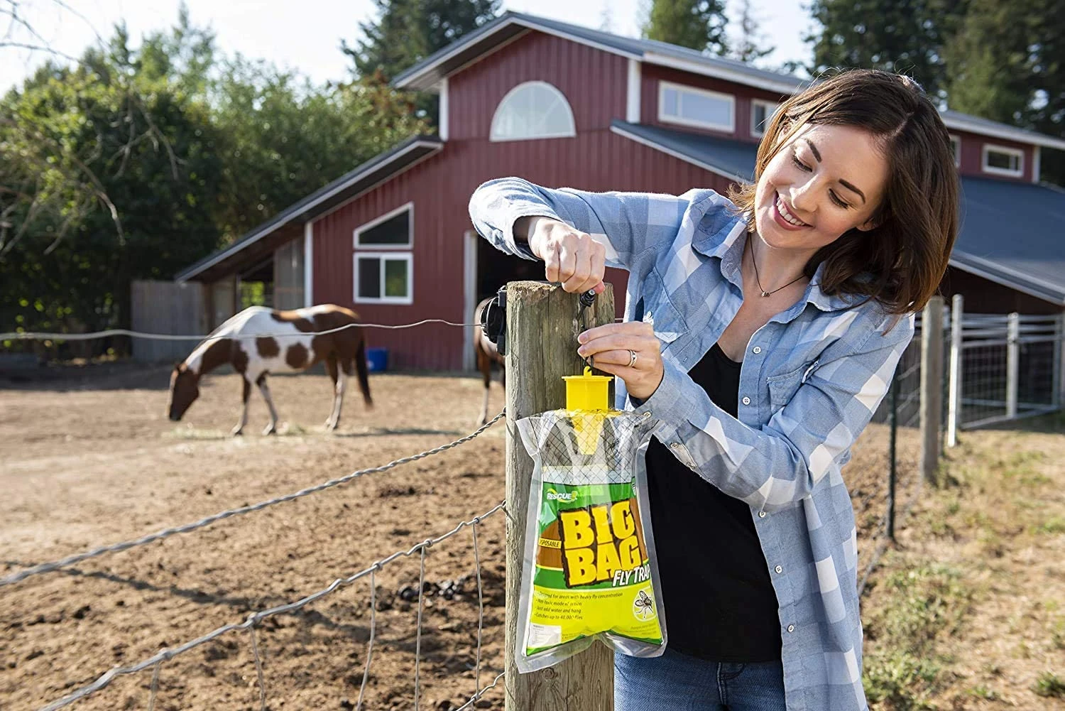 Rescue Big Bag Fly Trap gets rid of the flies most commonly found in agricultural areas, including house flies, false stable flies, blow flies, blue and green bottle flies, flesh flies, face flies and many others. Big Bag Fly Trap contains a fast-acting fly attractant that starts working as soon as water is added. Food and feed additives are combined with other dried ingredients to make the Rescue attractant. Lured by the scent, flies enter through the yellow top cap and drown in the water.