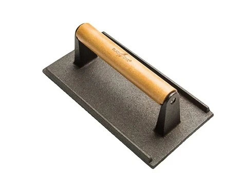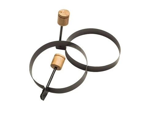The Blackstone Bacon Press is made of pre-seasoned cast iron, which provides even heating as well as retention, eliminating hot spots. It’s also excellent for making grilled sandwiches on the griddle. The set of 2 4″ diameter egg rings, which are perfect for making eggs and pancakes, include a wooden knob handle that folds for easy pick up and storage.