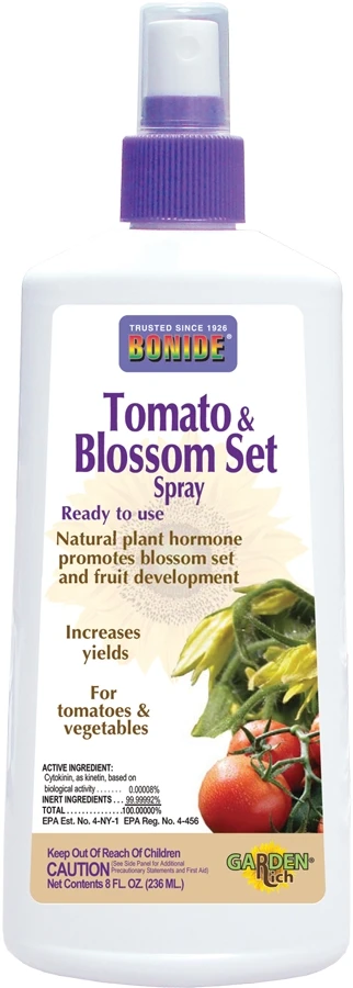 Makes blossoms set fruit despite poor weather. Nearly every blossom will produce larger, meatier, almost seedless tomatoes, ripening up to 3 weeks earlier. Also for use on other veg. plants!