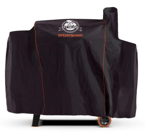 Protect your grill from the elements and in new condition with a tailored Pit Boss Sportsman cover. The custom-sized grill cover is a perfect fit for the Pit Boss 820 Sportsman Series. The heavy-duty polyester material and PVC backing protect your grill from natural elements while the draw string construction makes it easy to keep it secure. Effective as well as durable, complement your grill with a cover and give it the protection it deserves. Additional feature includes custom Sportsman logo with orange piping.