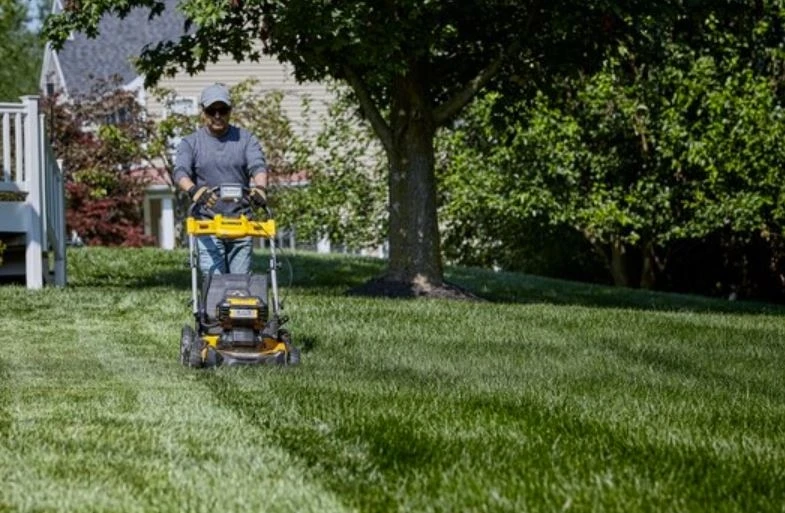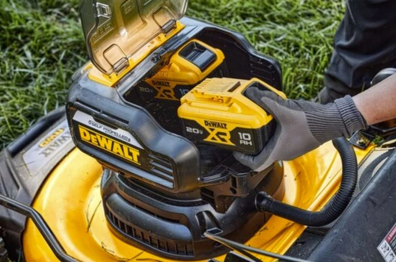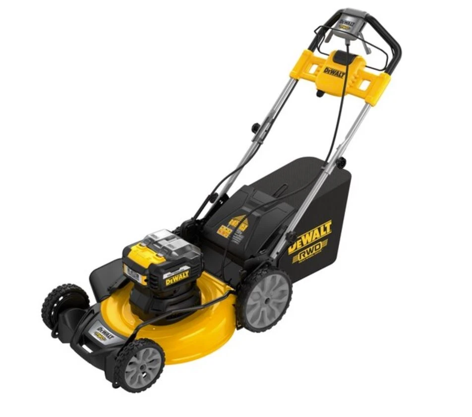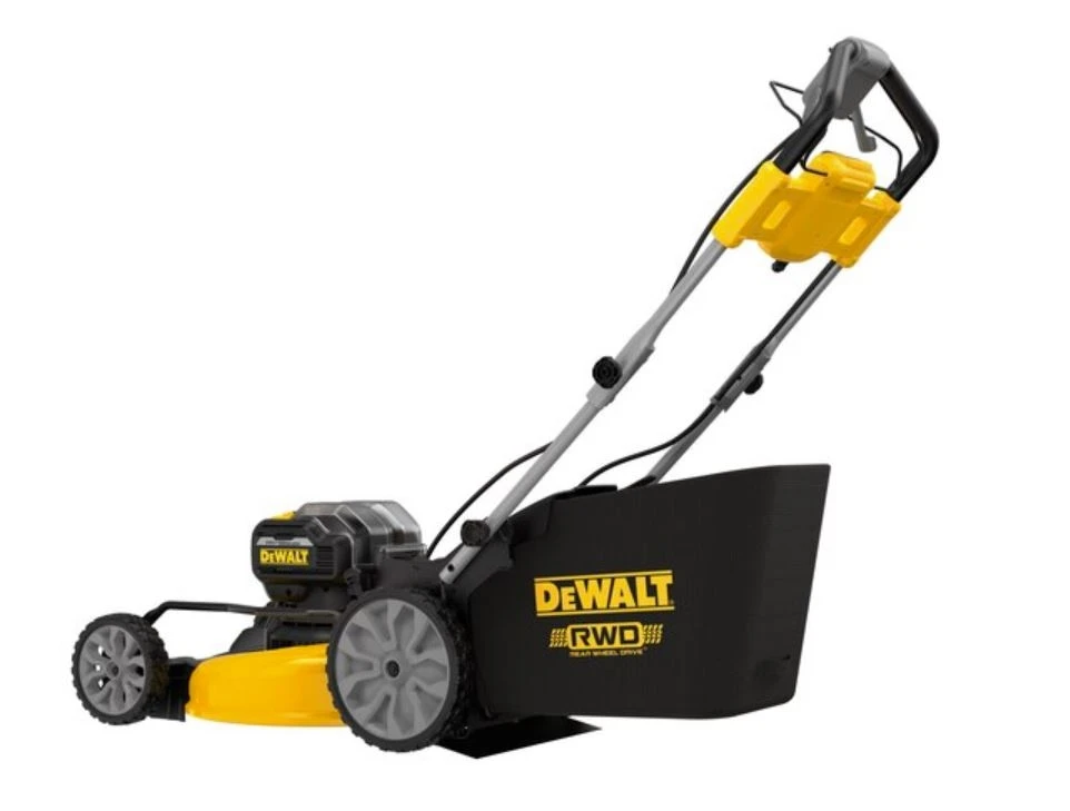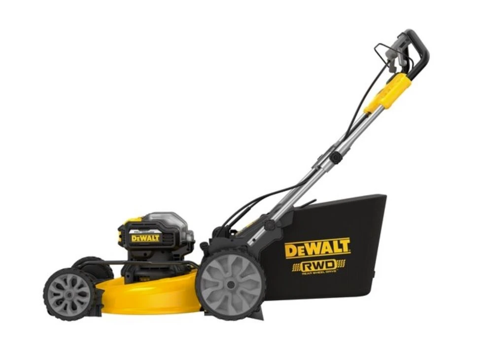 ackle large yards with the quick-cutting 2X20V MAX* XR® Brushless Cordless 21-1/2 in. Rear Wheel Drive Self-Propelled Mower. The mower features a brushless, direct drive motor that was engineered to lessen your workload and provide long runtime. Rear wheel drive delivers self-propulsion which takes much of the strain off of your arms, back, and legs without sacrificing mowing power. Innovative auto-sensing technology adjusts RPMs while working so you can cut thick grass whether you are mulching, bagging, or side discharging.