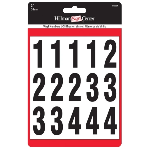 Each sticker is a 1-7/8″ x 7/8″ number on a 2″ x 1-1/4″ vinyl background. Durable and weather-proof with permanent adhesive backs.