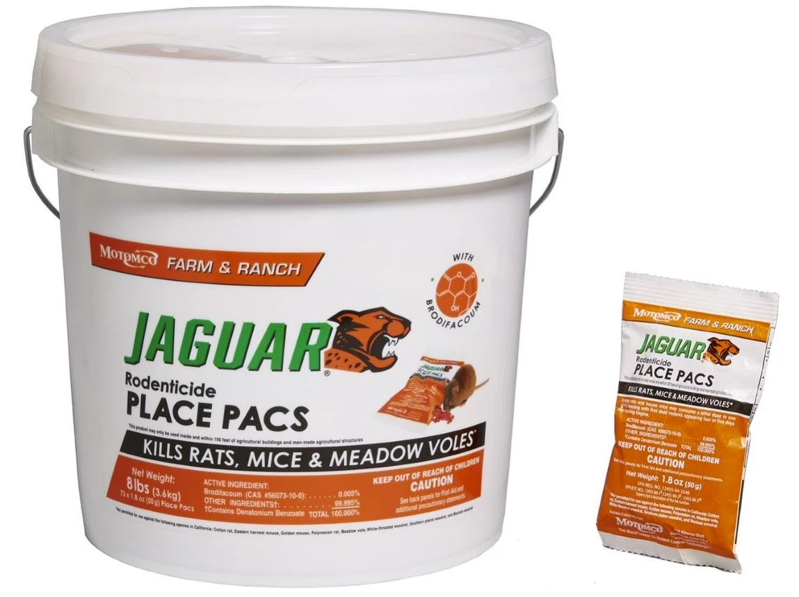 Jaguar Rodenticide contains the active ingredient Brodifacoum, Motomco’s most powerful anticoagulant.  Jaguar is our best-selling brand with poultry and swine producers and is especially successful at cleaning out tough infestations.  For baiting around agricultural buildings and areas with a lot of rodent pressure, Jaguar is the choice that works.Â
