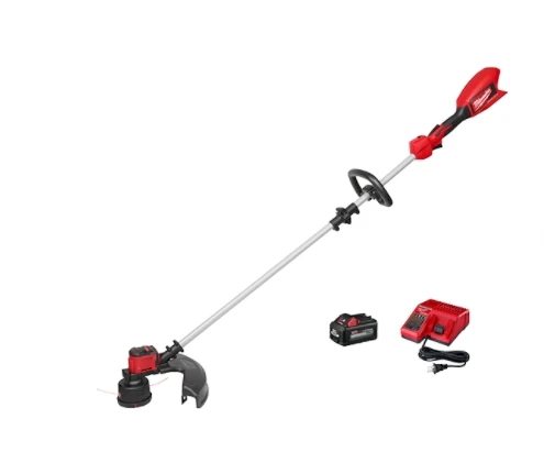 Our M18â„¢ Brushless String Trimmer delivers you more clearing power and a larger cutting swath than battery-powered competitors. The brushless motor was built and optimized specifically for trimming applications and provides up to 6,200 RPM. Paired with REDLINKâ„¢ Intelligence and an M18â„¢ REDLITHIUMâ„¢ HIGH OUTPUTâ„¢ battery, the trimmer provides efficient power delivery, providing you with longer run-time. The trimmer features high and low speed settings with a variable speed trigger. High-speed provides the power to take on demanding applications, and low-speed maximizes run-time while having plenty of power for grass trimming. The 16″ cutting swath trims more grass in a single pass, which increases your productivity. The Easy Load Trimmer Head delivers an easy line loading experience and the ability to load up to 25′ of trimmer line in under 30 seconds. This MILWAUKEE® cordless string trimmer is a part of the M18â„¢ System, which is fully compatible with over 200 solutions.