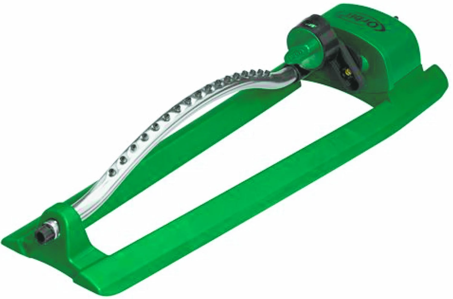 Oscillators are ideal for watering large, rectangular areas. The Easy Click dial adjusts the watering pattern area allowing the sprinkler to conform to an array of yard widths and lengths. Choose from full, partial, left, or right coverage. The oscillator features a heavy duty planetary gear train and smooth-action cam drive for lifelong performance and reliability. The wide base has been designed to make repositioning easy and to reduce tipping during watering. There are 17 spray nozzles providing even watering coverage without creating puddles. The plug at the end of the spray tube can easily unscrew to reveal a clean-out tool used to clear clogged jet nozzles.