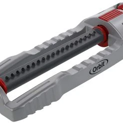 Oscillators are ideal for watering large to extra-large rectangular areas. Easily slide the two tabs to adjust the spray distance from a full coverage to a partial coverage, allowing the sprinkler to conform to an array of yard lengths. The wide base has been designed to make repositioning easy and to reduce tipping during watering. Designed with precision nozzles, water is distributed evenly over the entire area. The plug at the end of the spray tube can easily unscrew to reveal a clean-out tool used to clear clogged jet nozzles.