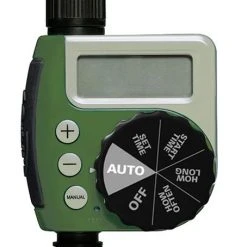 - Manual override button to keep programming and allow flexible manual watering