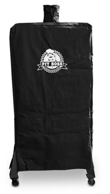 Reinforce the life of your smoker with the Pit Boss 7-Series Wood Pellet Vertical Smoker Cover. This cover ensures protection from rain, harsh UV rays, or accidental scratching with heavy-duty polyester backed with PVC material. The cover secures the entire surface of the smoker with tailored fitting around the chimney and hopper for reliable, form-fitting protection. The Pit Boss 7-Series Wood Pellet Vertical Smoker Cover also features a locking drawstring and large Pit Boss logo.