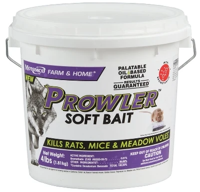 Prowler rodenticides, exclusively from Motomco, are formulated to control even the toughest infestations on farms and agricultural operations. Prowler baits fuse the proven, acute active Bromethalin with proprietary ingredients to create formulas designed to maximize palatability and bait acceptance. Using Motomco’s newest method for active ingredient synthesis, Prowler uses Bromethalin to achieve results with less bait compared to anticoagulants. Prowler Soft Bait is formulated with select ingredients including a unique blend of fats and oils for maximum palatability, even when competing food sources are present. It won’t freeze or melt in extreme temperatures.