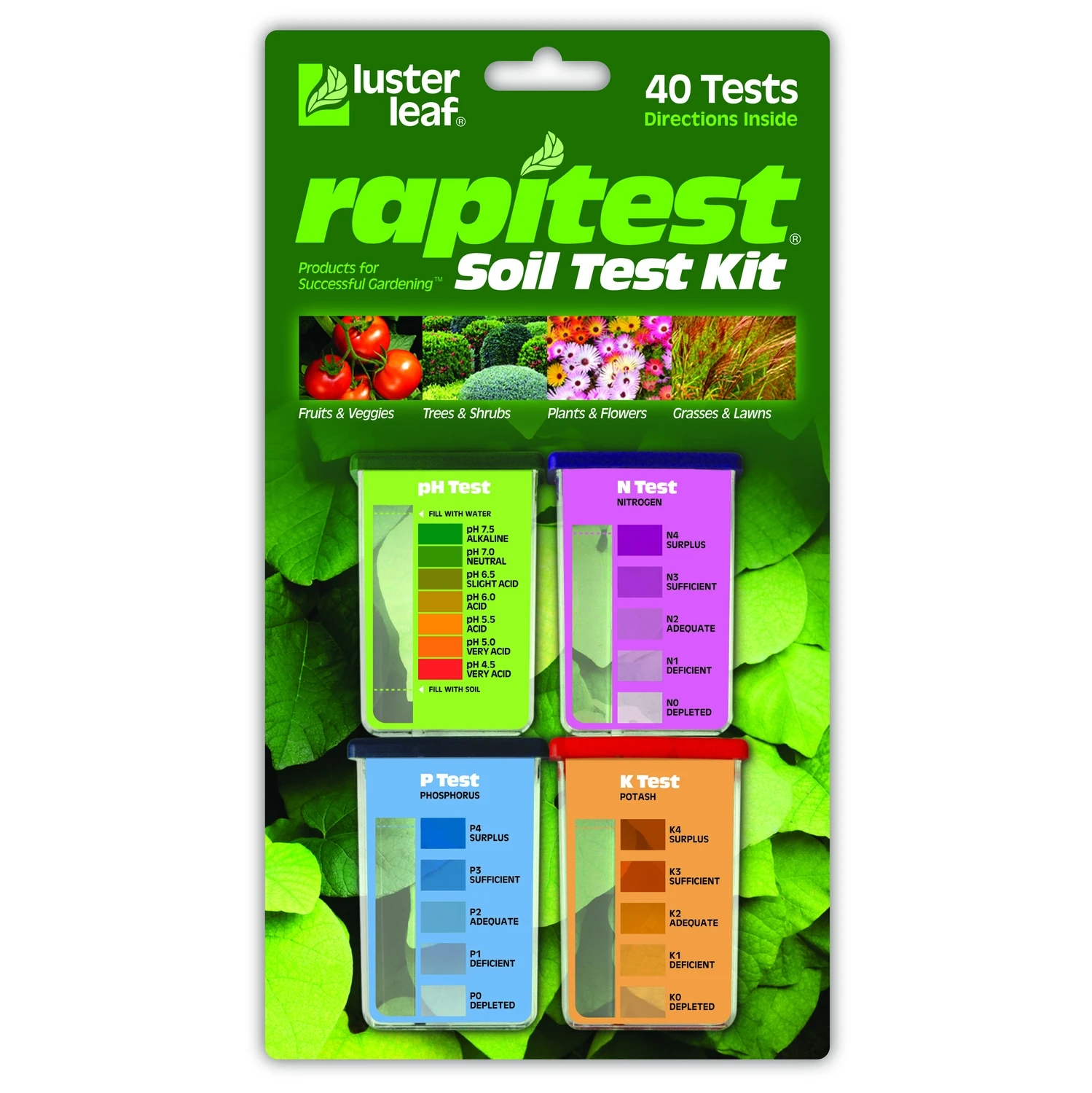 Kit contains 40 tests, 10 each for pH, nitrogen, phosphorus and potash.
