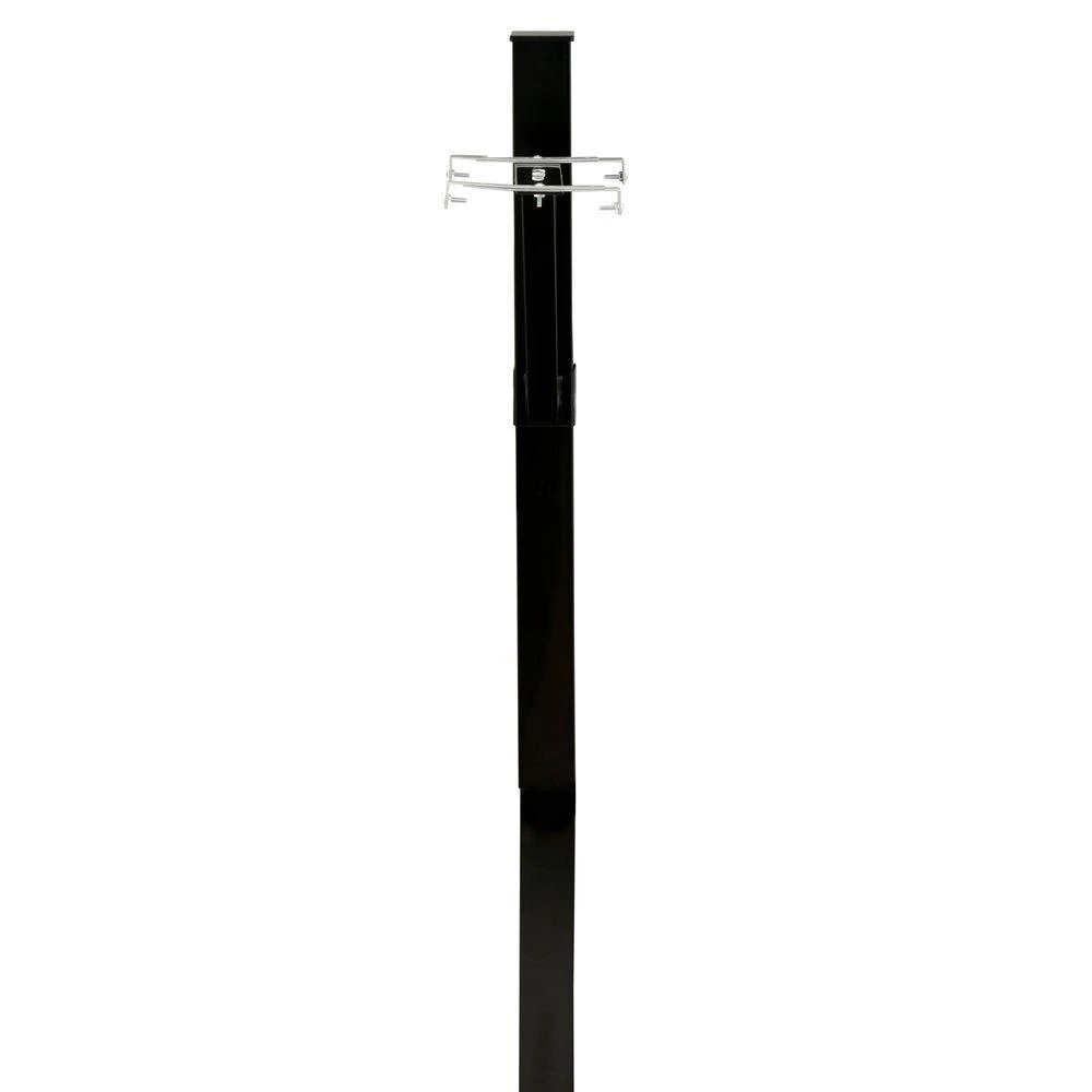 Black square drive-in post. The rust-resistant steel post and crossarm feature a black powder-coated finish that offers the utmost in durability and good looks. The post can be installed directly in the ground without the need for digging, while the crossarm is adjustable. The post is 60″ H.