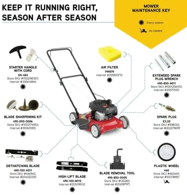 - Rust-resistant single-blade deck for consistent cutting action