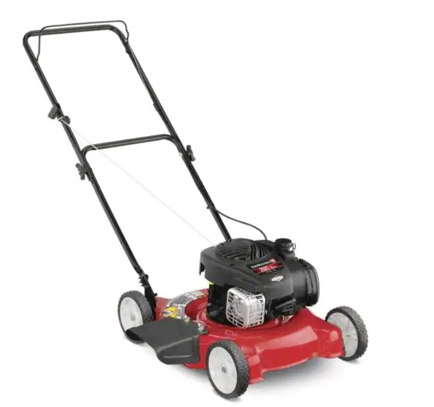 The MTD 20 in. Push Mower is equipped with a 125 cc Briggs and Stratton engine that delivers powerful performance. This mower features 3 cutting positions between 1-1/4 in. and 3-3/4 in., using a rust-resistant blade for durability and consistent cutting action plus a 20 in. path for a wider cut. For convenient mobility, this mower features 7 in. front and rear wheels along with a durable metal handle. This MTD push mower requires limited assembly with no tools required.